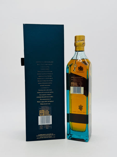 Johnnie Walker Blue Label is incomparably rich and smoky, with velvety smooth breaking waves of powerful flavour.Created from hand-selected casks of some of the rarest and most exceptional whiskies, there is no sensory experience quite like Johnnie Walker Blue Label. Hazelnuts, honey, sherry and oranges tumble in first, before releasing hidden secrets like ginger, kumquats, sandalwood and dark chocolate. A rich honey sweetness emerges, accompanied by hints of pepper and dried fruits, before an impossibly long, lingering, smooth finish of perfectly balanced, soft smoke.