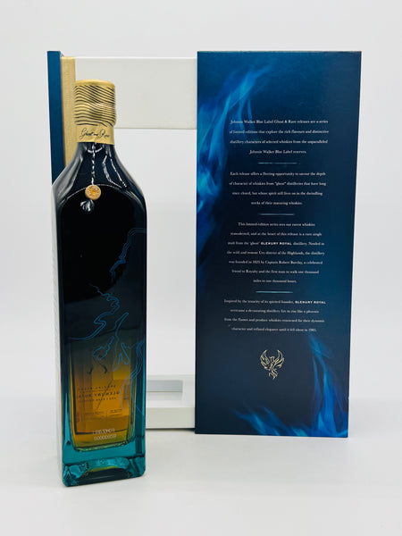 Johnnie Walker Blue Label Ghost and Rare Glenury Royal is the third in a series of special releases created by Johnnie Walker Master Blender Jim Beveridge using irreplaceable whiskies from "ghost" Scotch whisky distilleries that have long since closed together with other rare malt and grain whiskies. A limited release of Johnnie Walker's most premium brand, Glenury Royal draws on rare casks from the legendary Highland "ghost" distillery of Glenury Royal, a hidden treasure of the whisky world, which closed its doors in 1985.